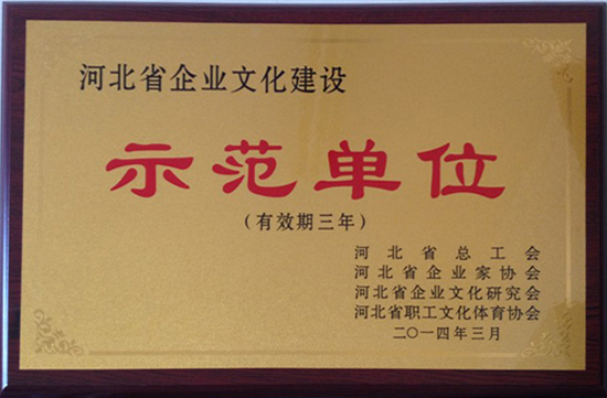 3月20日,河北省總工會、河北省企業(yè)家協(xié)會、河北省企業(yè)文化研究會、河北省職工文化體育協(xié)會聯(lián)合發(fā)布冀企協(xié)字【2014】15號文件,公布企業(yè)文化建設(shè)示范單位評選結(jié)果。其中,我公司被命名為河北省企業(yè)文化建設(shè)示范單位,董事長韓立君被命名為河北省企業(yè)文化建設(shè)先進(jìn)個人。