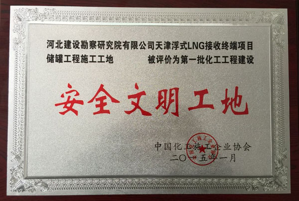 近日,我公司天津浮式LNG接收終端項目儲罐工程施工工地被中國化工施工企業(yè)協會評為安全文明工地。