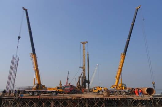 開工日期:2013年8月26日,竣工日期:2014年6月14日。寧高主橋樁基工程,施工合同任務(wù)為216-219號四個主墩,樁徑為1.8m、2.0m兩種,有效樁長為50m-73m,設(shè)計孔深62m-89m的鉆孔灌注樁共計78根,合同工作量13762m³。第二個施工合同任務(wù)為引橋樁基直徑1m的樁160根,有效樁長24-40m,直徑1.25m的樁31根,有效樁長27-35m,直徑1.6m的樁27根,有效樁長43-45m,直徑1.8m的樁33根,有效樁長30-45m?!?/span>