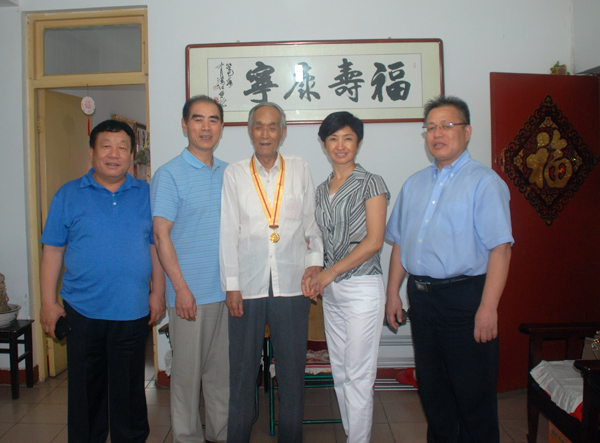 8月31日,在世界反法西斯戰(zhàn)爭勝利70周年來臨之際,省住建廳機關(guān)黨委書記王國章、離退辦處長趙月華,在總經(jīng)理李華偉、副總經(jīng)理張樹臣陪同下,看望慰問了曾參加過抗戰(zhàn)工作的離休老干部王福明同志,并帶來“中國人民抗日戰(zhàn)爭勝利70周年紀念章”和慰問金。