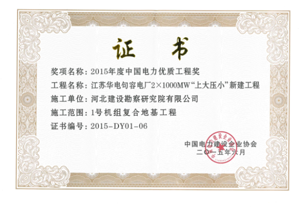 近日,我公司參建的江蘇華電句容電廠2×1000MW“上大壓小”新建工程獲得2015年度中國(guó)電力優(yōu)質(zhì)工程獎(jiǎng)。