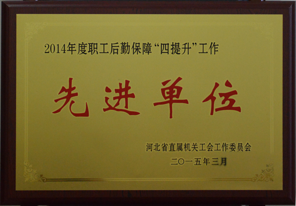 公司在2014年度職工后勤保障“四提升”活動中,被河北省直屬機(jī)關(guān)工會工作委員會評為省直系統(tǒng)先進(jìn)單位。