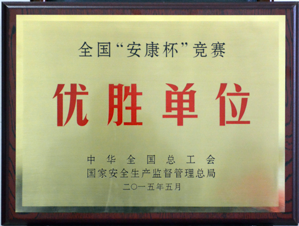 公司在2014年度“安康杯”安全生產(chǎn)競(jìng)賽中,被中華全國(guó)總工會(huì)、國(guó)家安全生產(chǎn)監(jiān)督管理總局評(píng)為優(yōu)勝單位。這是我公司連續(xù)第十一年獲此殊榮。