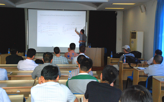 本次報告分為三個部分:胡偉博士介紹了赤泥地質(zhì)聚合物的最新研究成果;何強教授介紹了赤泥用于煙氣脫硫的最新研究成果;四名美國學生就各自的研究方向和在中國的見聞,對交通、環(huán)境的可持續(xù)發(fā)展進行了介紹。報告會使我公司工程技術(shù)人員進一步了解了赤泥研究課題取得的成果與進展、巖土工程材料國際前沿動態(tài)、國際上的研究思路,同時也了解了美國人眼中的中國發(fā)展,此次到場參與報告的美方學生也表示有很大收獲。