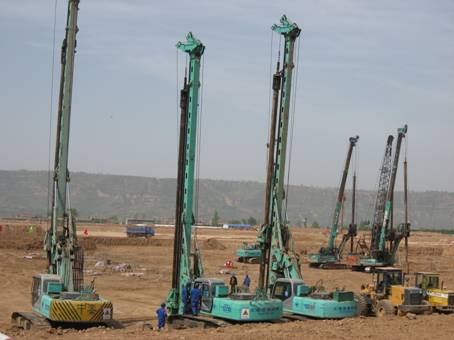 我公司共完成了5#機(jī)組配套的主廠房、煤倉(cāng)間、主變、升壓站架構(gòu)、鍋爐補(bǔ)給水間、爐前兩機(jī)公用其他設(shè)施地基處理。地基處理采用干作業(yè)旋挖鉆孔灌注樁,共完成φ900灌注樁727根,φ800灌注樁584根,φ650灌注樁246根,混凝土19573.5m3。