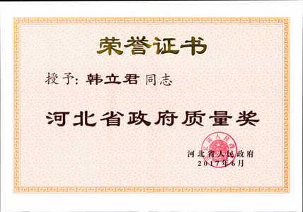 韓立君董事長(zhǎng)榮獲河北省政府質(zhì)量獎(jiǎng)個(gè)人獎(jiǎng)、公司獲組織提名獎(jiǎng)