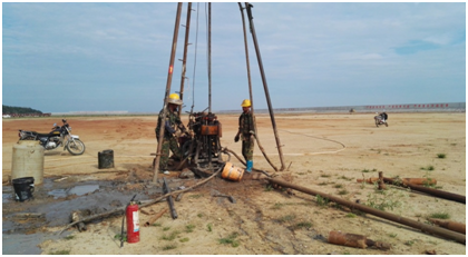 根據(jù)工程要求、地層特點(diǎn)及擬采用的基礎(chǔ)形式,勘察手段采用了鉆探、標(biāo)準(zhǔn)貫入試驗(yàn)、波速測(cè)試和電阻率測(cè)試,關(guān)鍵環(huán)節(jié)照片詳見圖2-圖6。土工試驗(yàn)項(xiàng)目包括含水量試驗(yàn)、界限含水量試驗(yàn)、比重試驗(yàn)、基巖飽和單軸抗壓強(qiáng)度試驗(yàn)、巖塊密度試驗(yàn)、巖塊波速測(cè)試等。