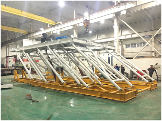 我鉆探設(shè)備公司新研制XSDZ5000液壓旋升底座,在西藏羊八井地?zé)崾┕ぶ械玫匠晒?yīng)用。西藏羊八井地?zé)崾┕?,地?zé)豳Y源豐富,溫度很高達(dá)到300多度,隨時(shí)噴發(fā)的高溫蒸汽對(duì)人身和設(shè)備安全造成極大的安全隱患。XSDZ5000液壓旋升底座是采用液壓油缸將鉆機(jī)底座從1.8米高旋升到5米高,創(chuàng)造一個(gè)較高的凈空高度,以便于安裝防噴裝置,確保順利施工。