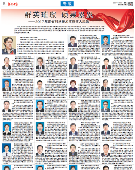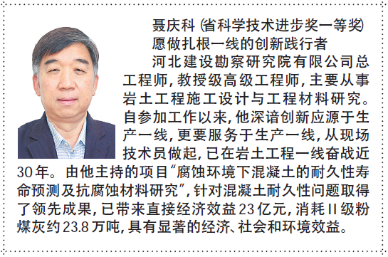 6月5日,河北日?qǐng)?bào)專(zhuān)版文章《群英薈萃 碩果累累》對(duì)2017年度河北省科學(xué)技術(shù)獎(jiǎng)獲獎(jiǎng)人風(fēng)采進(jìn)行展示。我公司的完成的《腐蝕環(huán)境下混凝土的耐久性壽命預(yù)測(cè)及抗腐蝕材料研究》獲得一等獎(jiǎng),聶慶科總工程師作為第一完成人在專(zhuān)版文章中進(jìn)行了刊載,這是以聶總為代表的廣大專(zhuān)業(yè)技術(shù)人員的共同光榮,也必將激勵(lì)我們更加努力爭(zhēng)創(chuàng)新的科技成果和榮譽(yù)。