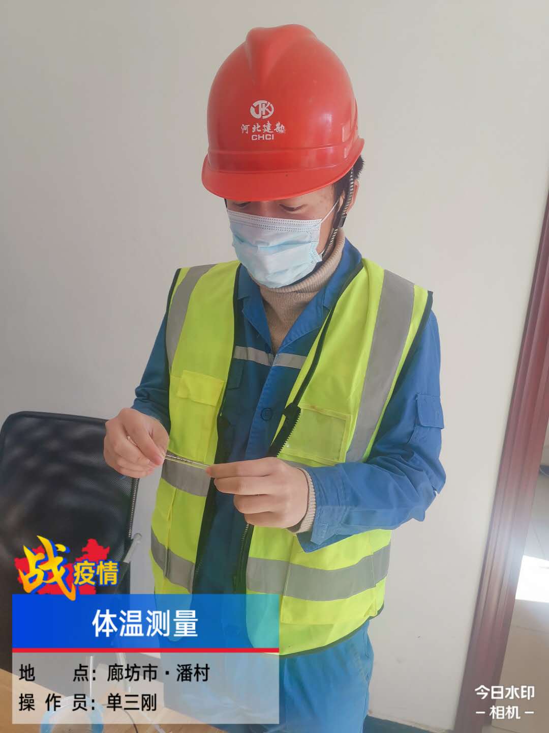 針對在崗人員值班人員,登記造冊。每日(每人每日不少于2次)開展人員體溫量測工作,并做好記錄,建立體溫量測表,每天19:00前將記錄表上傳至微信群中。發(fā)現(xiàn)異常情況,及時匯報給上級部門,積極幫助項目部采購防護(hù)物資,對值班人員因疫情不能換班回家進(jìn)行了補(bǔ)貼。