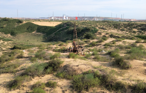 擬建場(chǎng)地位于陜北黃土高原北緣與毛烏素沙漠東南緣的接壤地帶,上部地層為風(fēng)積沙,下部為侏羅系延安組砂質(zhì)泥巖和砂巖。初步查明風(fēng)積砂層的厚度及其物理力學(xué)性質(zhì),查明下部基巖的埋深,及初步查明地下水的埋藏條件、地下水類(lèi)型、補(bǔ)給排泄條件,調(diào)查其變化幅度是本工程的關(guān)鍵點(diǎn)和重點(diǎn)。