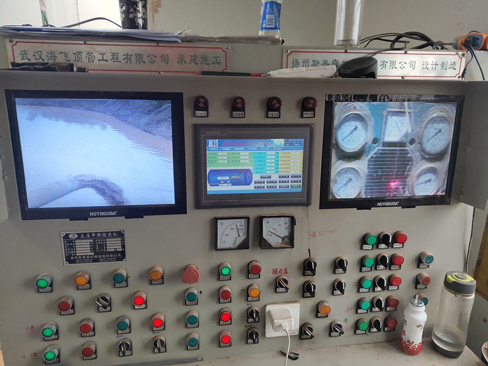 頂進(jìn)用工作井頂進(jìn)設(shè)備進(jìn)行速度控制,分為兩個(gè)部分,機(jī)頭入洞階段要嚴(yán)格控制速度,此階段重點(diǎn)是找正管子中心、高程,偏差控制在±5mm之內(nèi),所以速度不要太快。