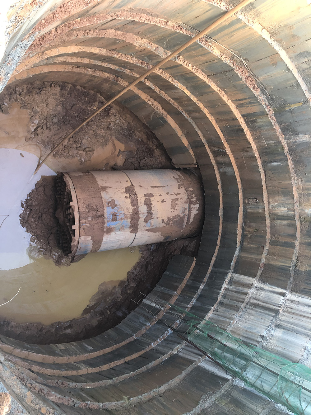 當(dāng)機(jī)頭全部進(jìn)入后封閉后,開始由機(jī)頭向管外壁注觸變泥漿,使管外壁形成泥漿套,起到減阻、潤(rùn)滑作用。其中的膠質(zhì)能將套管外圍的沙土膠化粘結(jié),從而避免套管外側(cè)的沙土擾動(dòng)與塌陷。