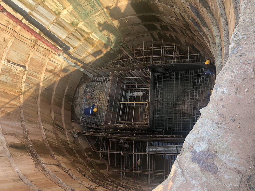 1)豎井部分:1#排水管中的1#工作井,2#排水管中的4#、5#、6#工作井和5#、6#接收井,共計(jì)4個(gè)工作井,2個(gè)接收井。工作井外徑尺寸為10500mm,接收井外徑尺寸9400mm。采用鋼筋混凝土澆筑而成。