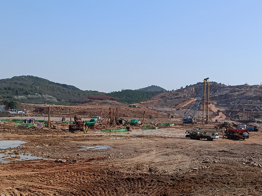 本工程位于廬江縣冶父山鎮(zhèn)石山社區(qū),廬江東北方向約17公里,東南側(cè)臨G346國道。廠區(qū)建設(shè)總占地面積為199074平方米,本次廠區(qū)擬建物包括生產(chǎn)線、庫房和輔助設(shè)施等。工作內(nèi)容主要包括測量放線、鉆孔灌注樁旋挖成孔、鋼筋籠制作及安放、砼灌注、鉆渣外運、強(qiáng)夯施工、樁基低應(yīng)變及鉆芯取樣檢測、強(qiáng)夯檢測等。