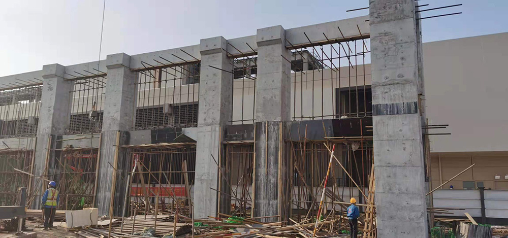 本工程自2021年1月27日正式開(kāi)工并于2021年2月4日完成樁基施工。樁基經(jīng)養(yǎng)護(hù)并完成樁檢后,于2021年3月4日開(kāi)始進(jìn)行梁柱施工,并于2021年5月16日完成全部施工任務(wù)。