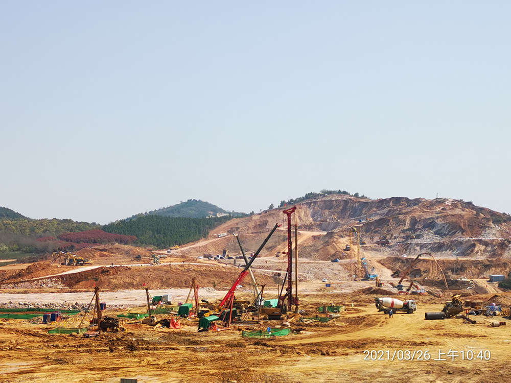 本工程工作內(nèi)容主要包括測(cè)量放線、鉆孔灌注樁旋挖成孔、鋼筋籠制作及安放、砼灌注、鉆渣外運(yùn)、強(qiáng)夯施工等。于2021年03月11日開工,7月15日完工,歷時(shí)126天,滿足招標(biāo)方的節(jié)點(diǎn)工期和總工期要求。