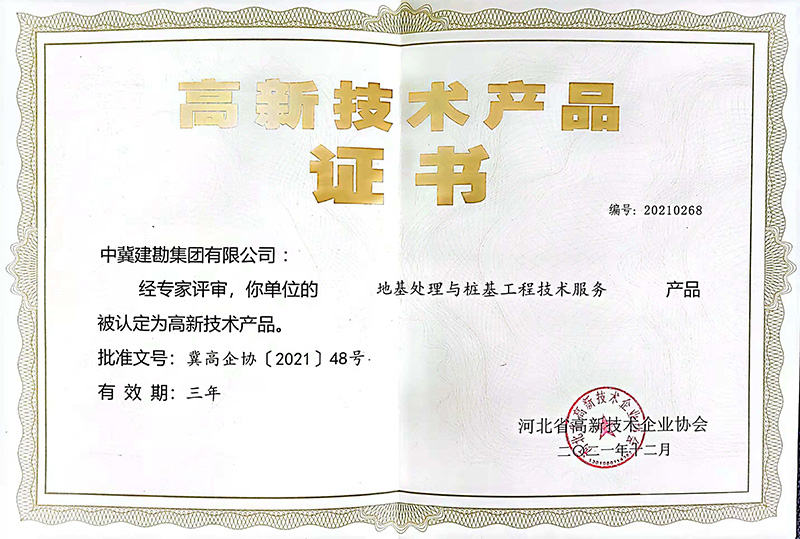近日,河北省高新技術(shù)企業(yè)協(xié)會按照《河北省高新技術(shù)產(chǎn)品認定實施細則》要求,經(jīng)組織專家評價、評審、認定,我公司兩項技術(shù)“地基處理與樁基工程技術(shù)服務(wù)”和“巖土工程勘察設(shè)計技術(shù)服務(wù)”兩項技術(shù)服務(wù)榮獲“高新技術(shù)產(chǎn)品”稱號。本次榮獲“高新技術(shù)產(chǎn)品”稱號,標(biāo)志著擁有自主知識產(chǎn)權(quán)及核心技術(shù)的兩項服務(wù)產(chǎn)品得到了行業(yè)協(xié)會的認可,進一步提升了公司技術(shù)服務(wù)的品牌競效應(yīng)以及品牌的競爭力、影響力。同時“高新技術(shù)產(chǎn)品”是高新技術(shù)企業(yè)認定的重要依據(jù)和加分項,為公司2022年高新技術(shù)企業(yè)的期滿重新認定打下了良好基礎(chǔ)。