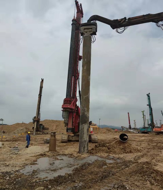 本工程自2021年01月18日開工,2021年09月24日完工。共完成旋挖灌注樁直徑(600mm)4776根、直徑(800mm)170根,混凝土等級(jí)C30、C35P8兩種等級(jí),直徑600mm樁端入中風(fēng)化板巖≥1.2m,直徑800mm樁端入中風(fēng)化板巖≥1.6m。