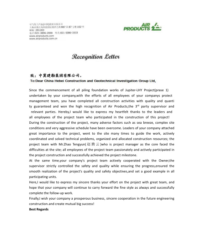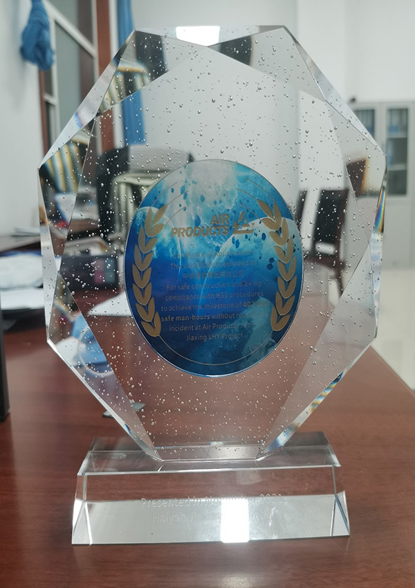 近日,我公司承建的空氣化工產(chǎn)品(浙江)有限公司海鹽氫能源和工業(yè)氣體綜合項(xiàng)目一期工程,收到業(yè)主頒發(fā)的“達(dá)到400000安全人工時(shí)”優(yōu)秀團(tuán)隊(duì)獎(jiǎng)杯和表?yè)P(yáng)信。