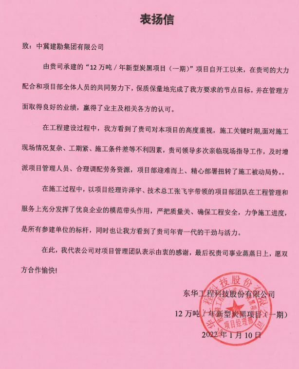 12萬(wàn)噸/年炭黑項(xiàng)目(一期)項(xiàng)目強(qiáng)夯施工圓滿完成施工任務(wù),總包方對(duì)我公司年青的項(xiàng)目團(tuán)隊(duì)高度認(rèn)可,稱他們是所有參建單位的標(biāo)桿,充分展示了我公司年青一代的干勁與活力。