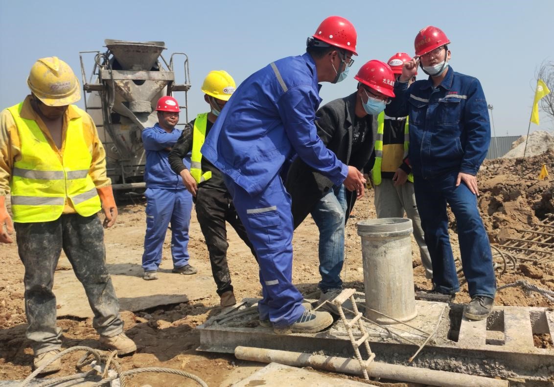 本工程自2022年2月17日開工,至2022年5月10日完成全部合同內(nèi)容。本工程的工程樁負(fù)孔深度和氣化框架的樁頂標(biāo)高均在-5.3m,尿素裝置的樁頂標(biāo)高為-3.0m和-4.0m兩種,施工時樁頂混凝土超灌和樁頭質(zhì)量控制是本項(xiàng)目的一個重點(diǎn)。為保證灌注樁施工過程中樁頂超灌和樁頭質(zhì)量,項(xiàng)目部現(xiàn)場制作了撈渣器,嚴(yán)格控制超灌高度。經(jīng)開挖檢驗(yàn),現(xiàn)場樁頭未存在質(zhì)量問題。