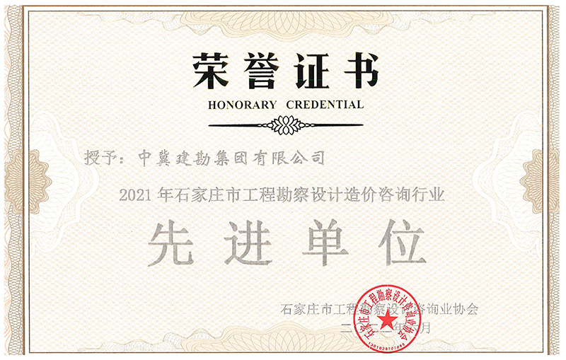 近日,石家莊市工程勘察設(shè)計(jì)咨詢業(yè)協(xié)會(huì)下發(fā)文件《關(guān)于表彰2021年石家莊市工程勘察設(shè)計(jì)造價(jià)咨詢行業(yè)先進(jìn)單位和先進(jìn)個(gè)人的通知》(石設(shè)協(xié)字【2022】6號(hào)),我公司被授予“2021年石家莊市工程勘察設(shè)計(jì)造價(jià)咨詢行業(yè)先進(jìn)單位”稱號(hào),韓立君同志、商衛(wèi)東同志被授予“2021年石家莊市工程勘察設(shè)計(jì)造價(jià)咨詢行業(yè)先進(jìn)個(gè)人”稱號(hào)。此榮譽(yù)的獲得說(shuō)明了公司在貫徹高質(zhì)量發(fā)展戰(zhàn)略方面取得了良好業(yè)績(jī),為推動(dòng)我市勘察設(shè)計(jì)行業(yè)高質(zhì)量發(fā)展做出了積極貢獻(xiàn),得到了行業(yè)的肯定和認(rèn)可。