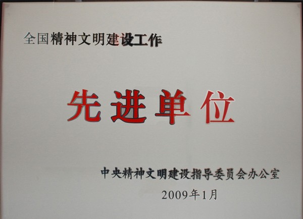近年來,我公司堅(jiān)持以科學(xué)發(fā)展觀為指導(dǎo),在全體員工中積極開展精神文明創(chuàng)建活動(dòng),文明施工程度和員工素質(zhì)不斷提高,精神文明建設(shè)取得顯著成績(jī)。近日,我公司受到中央精神文明建設(shè)指導(dǎo)委員會(huì)辦公室表彰,被授予“全國(guó)精神文明建設(shè)工作先進(jìn)單位”稱號(hào)。