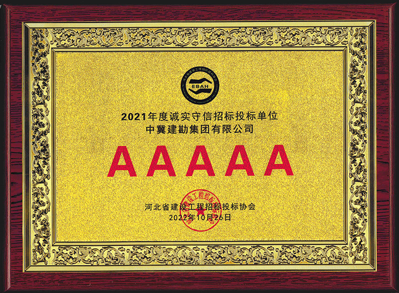 近日,我公司被河北省建設(shè)工程招標(biāo)投標(biāo)協(xié)會評為2021年度河北省建設(shè)工程招標(biāo)投標(biāo)誠實守信5A級施工企業(yè)。