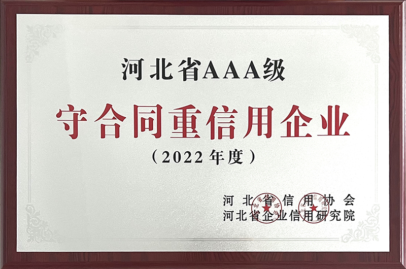 根據(jù)河北省信用辦、河北省信用協(xié)會等七部門印發(fā)的《關(guān)于開展“推進誠信建設(shè)共建信用河北”的活動方案》的通知,以及河北省信用協(xié)會、河北省企業(yè)信用研究院印發(fā)的《關(guān)于2022年度“河北省守合同重信用”企業(yè)申報認定工作的通知》,我公司被評為“河北省AAA級守合同重信用企業(yè)”。