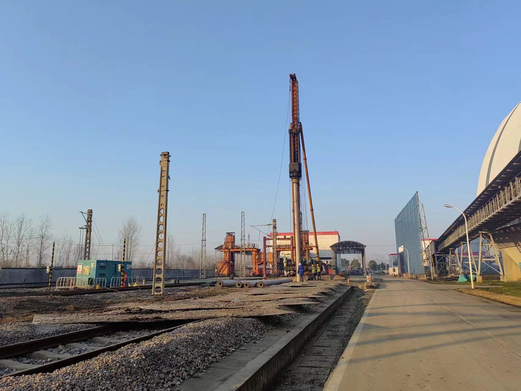 H2標段樁基工程于2023年7月11日開工, 2024年1月28日施工完成。本工程因施工區(qū)域較為分散,項目管理難度加大。為此,項目部積極與設(shè)計院就出圖順序進行溝通,提前籌劃安排行進方向的管樁原材料配備和現(xiàn)場道路鋪設(shè)、排水設(shè)施供應(yīng)等后勤保障工作,保證樁機施工的連續(xù)性,確保了建設(shè)單位的工期時間要求。此外,管帶機施工區(qū)域位于三期電廠內(nèi),涉及10kV高壓線拆除、大棚拆遷、樹木移除、監(jiān)控拆除、屏風(fēng)拆除等工作。項目部積極與建設(shè)方協(xié)調(diào)溝通,全力推進施工區(qū)域內(nèi)障礙物拆除和清理工作。因部分樁位在火車鐵軌上,項目部積極與鐵路方溝通,與建設(shè)方、監(jiān)理方謀劃施工方案,采取相應(yīng)措施,圓滿完成了施工任務(wù)。經(jīng)第三方檢測,合格率100%。
