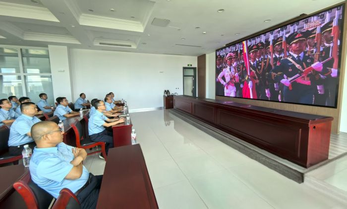 當(dāng)威武雄壯的受閱方隊(duì)邁著鏗鏘有力的步伐走過,當(dāng)各類現(xiàn)代化裝備依次亮相,當(dāng)戰(zhàn)機(jī)編隊(duì)劃破長(zhǎng)空,強(qiáng)大的陣容、恢宏的氣勢(shì),讓觀看直播的職工們心潮澎湃,會(huì)議室里不時(shí)響起陣陣驚呼聲。