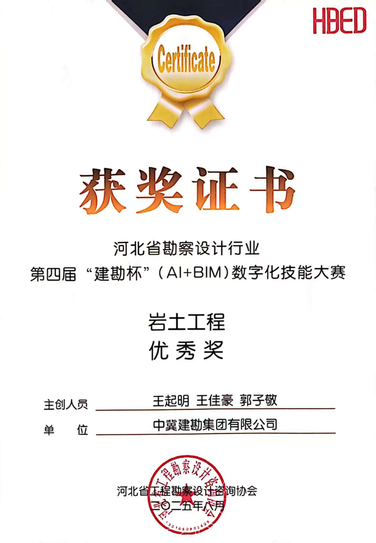 集團(tuán)公司榮獲第四屆“建勘杯”(AI+BIM)數(shù)字化技能大賽兩個(gè)獎(jiǎng)項(xiàng)