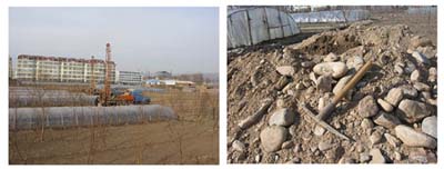 根據(jù)勘察場區(qū)以碎石土為主的特點(diǎn),以鉆探為主,輔以井探、深層平板載荷試驗(yàn)、面波測試、地微振測試、孔內(nèi)波速測試、重型動(dòng)力觸探試驗(yàn)、標(biāo)準(zhǔn)貫入試驗(yàn)等原位測試手段。在探井內(nèi)采取大體積土樣對(duì)碎石土進(jìn)行準(zhǔn)確定名,采用超重型動(dòng)力觸探、深層平板載荷試驗(yàn)準(zhǔn)確提供碎石土的承載力。勘察中首次用面波法查明了整個(gè)場地?zé)o暗藏的河道、溝浜、墓穴,為地基均勻性評(píng)價(jià)及建筑地基基礎(chǔ)方案的科學(xué)選擇奠定了基礎(chǔ)。