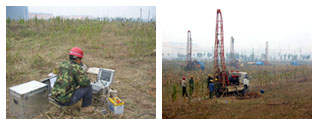 本工程勘察以鉆探為主,輔以扁鏟側(cè)脹試驗、靜力觸探試驗、標準貫入試驗、孔內(nèi)波速測試、地微振測試原位測試手段。根據(jù)場地及建筑物特點進行了中壓固結(jié)試驗、三軸壓縮試驗(UU法)、土的易溶鹽含量試驗、滲透試驗、顆粒分析試驗等,手段齊全。在邯鄲巖土工程勘察中首次采用扁鏟側(cè)脹測試手段,測定了土的靜止側(cè)壓力系數(shù)、側(cè)向基床反力系數(shù)、持力層的承載力特征值。