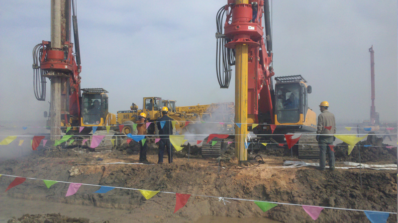 施工內(nèi)容包括:灌注樁鋼筋籠制作、運(yùn)輸及安放,鉆孔樁成孔、商品砼采買、砼灌注等工作。我公司采用旋挖鉆機(jī)成孔,樁數(shù)總計906根,樁徑600mm,樁身混凝土強(qiáng)度等級C35,灌注混凝土9103m3。
