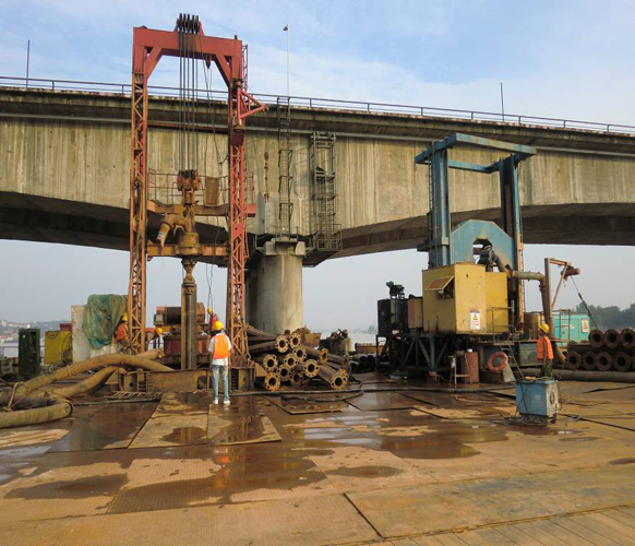 本工程是石長鐵路的復(fù)線工程,橋址位于湖南省常德市。施工時間為2010年5月31日至2010年12月31日。采用GF300、ZSD300型回轉(zhuǎn)鉆機(jī)、TR400C旋挖鉆機(jī)及YCJF-250型沖擊反循環(huán)鉆機(jī)成孔,泥漿護(hù)壁工藝。共完成Φ1.8m~Φ2.5m基樁38根,混凝土灌注量8000余方。