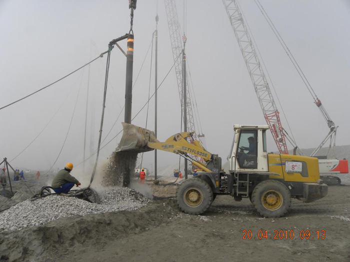 儲(chǔ)罐振沖碎石樁工作量:碎石樁每罐基礎(chǔ)1519根,共6076根,樁徑1300㎜/1200㎜,樁長(zhǎng)30m,總方量318512m3。